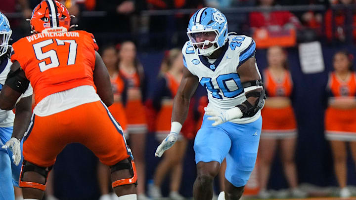The redshirt sophomore logged 17 tackles, seven sacks, two forced fumbles, and one pass deflection in 2025. While UNC fans didn't have a lot to celebrate this past season, Thompson's breakout season was one of the best storylines of the year for the Tar Heels.